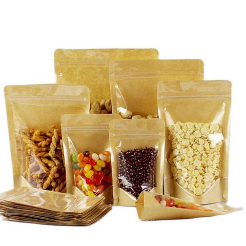Stand Up Zipper Brown Kraft Paper richiudibile a chiusura lampo termosaldabile conservazione degli alimenti Doypack sacchetti di imballaggio sacchetto con finestra trasparente